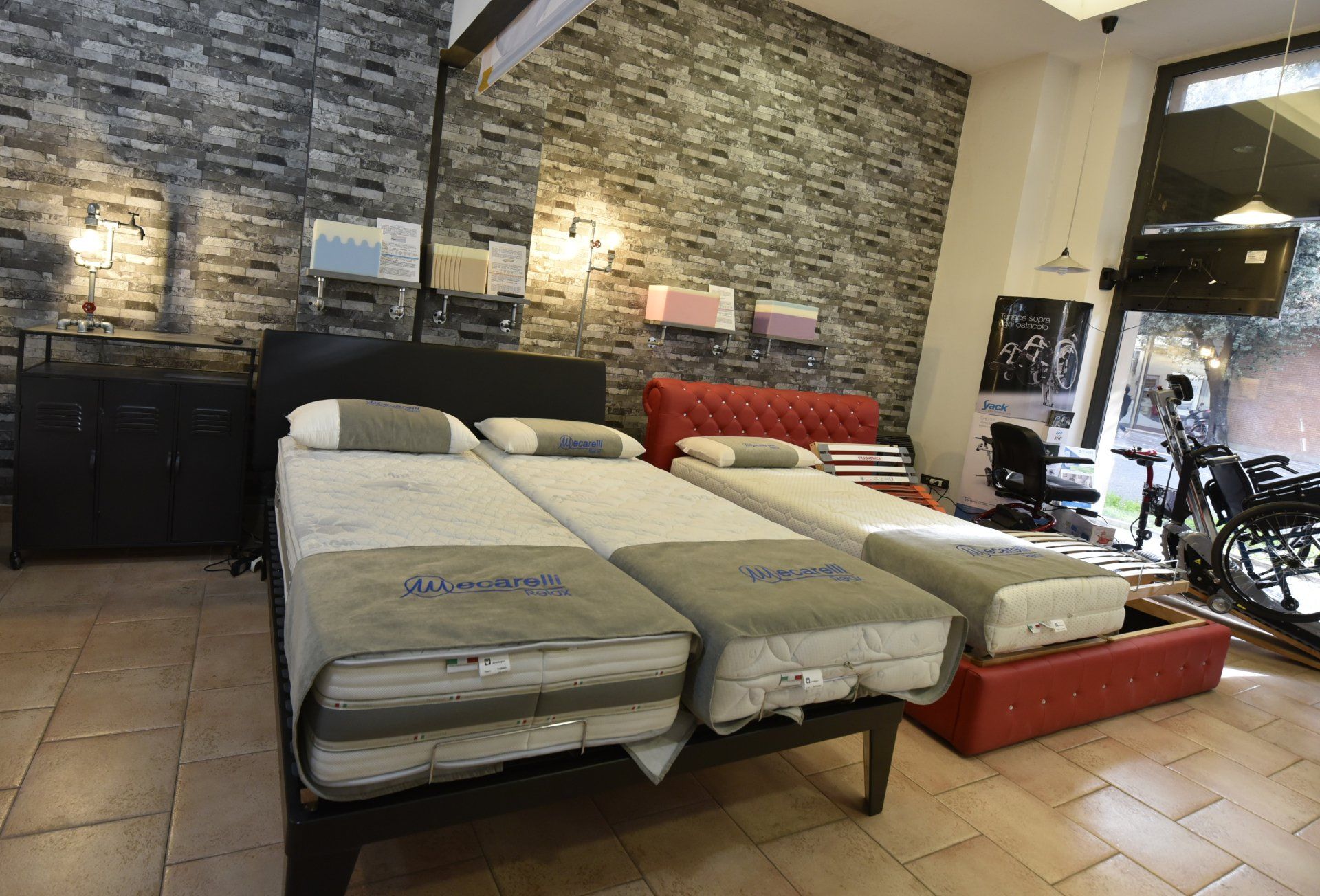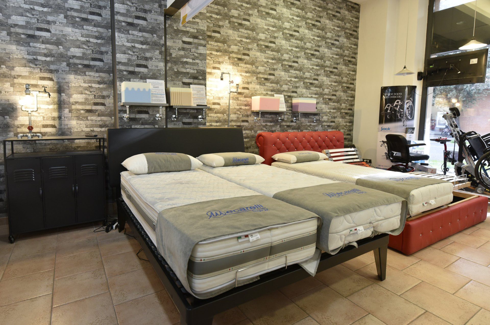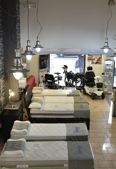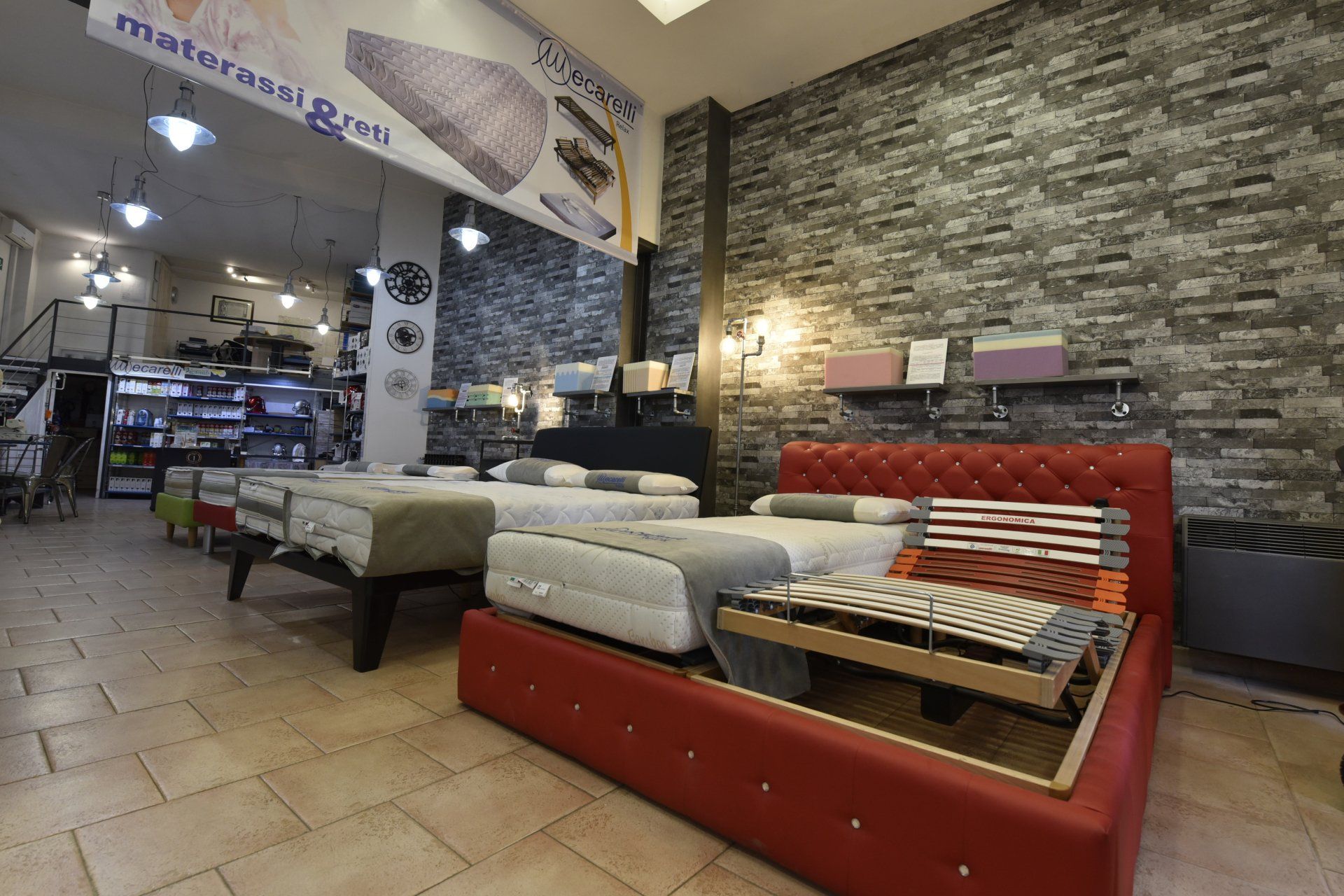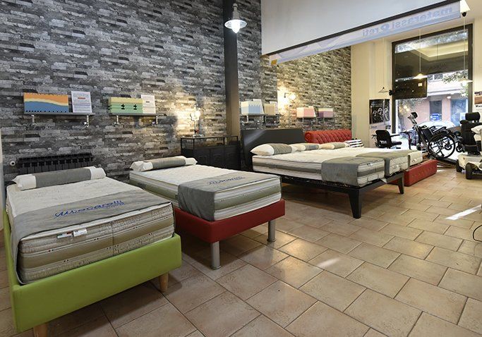 Presso il punto vendita sono inoltre disponibili reti a doghe in legno di faggio curvato a vapore, sia con telaio in metallo che in legno, fisse o con movimentazioni manuali o elettriche, e una vasta gamma di cuscini.